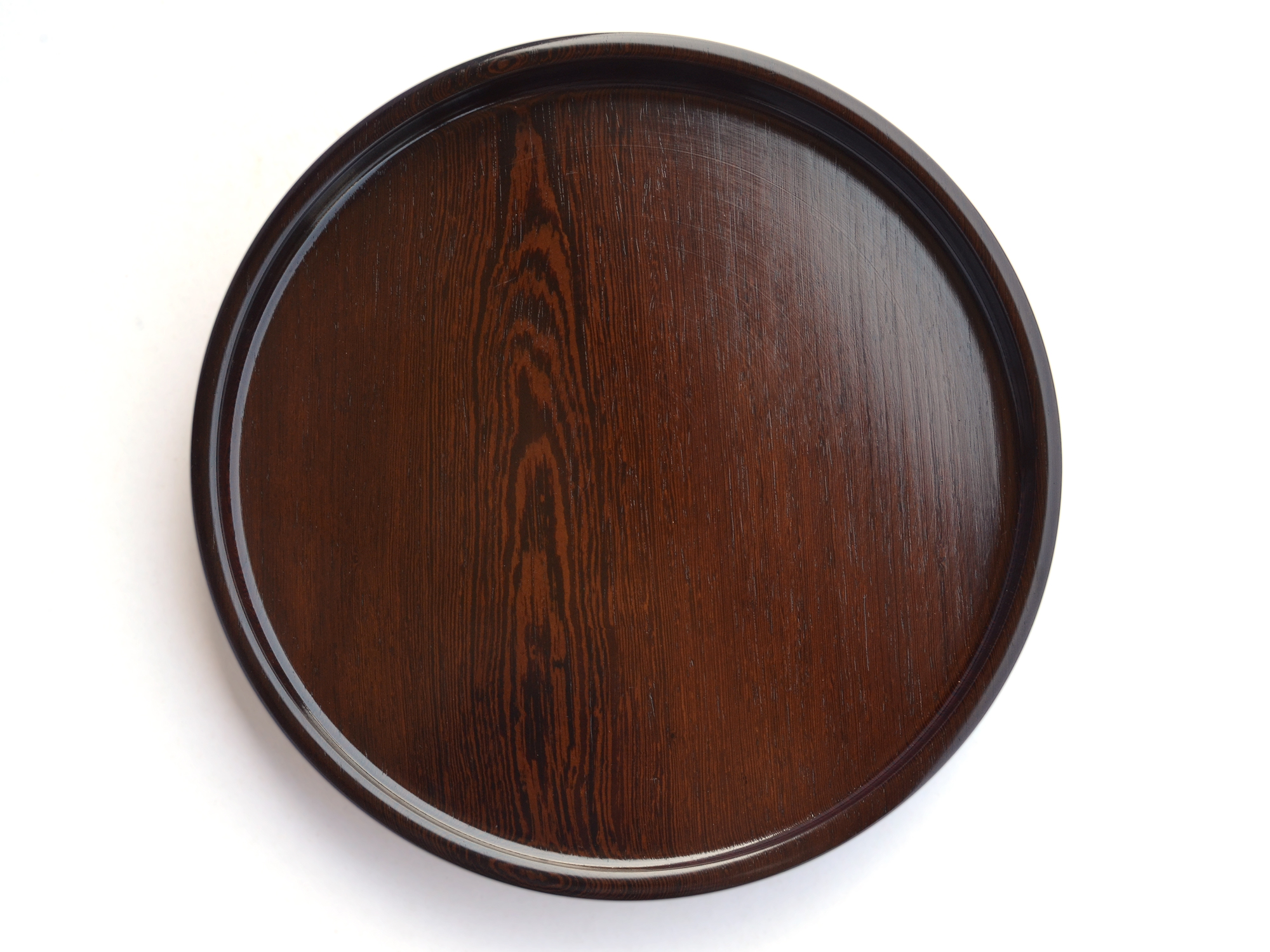 - ほどよい軽さの実用盆。見る角度によって縮杢が美しい。深さ16mm。450g。